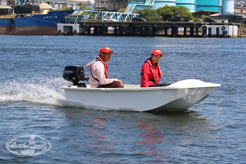- 全長290cm・重量39kgで2馬力から6馬力まで対応の2人乗り艇